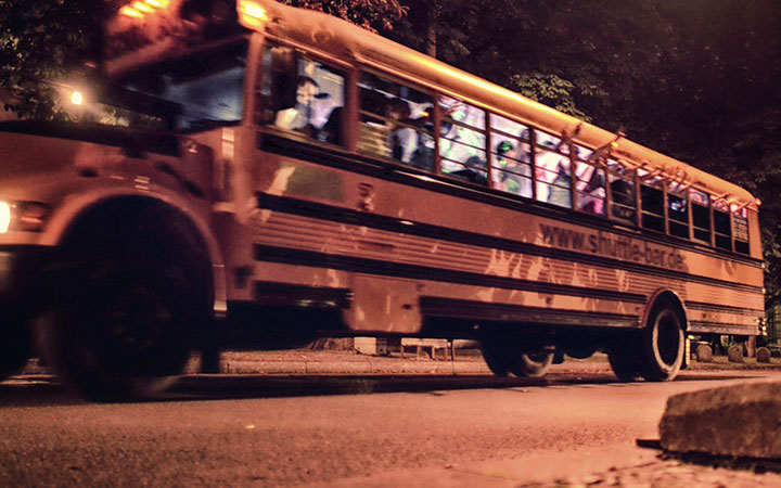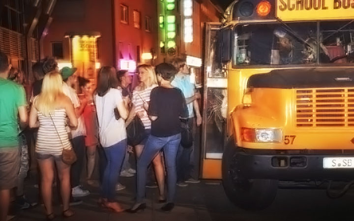 Der zum Partybus umfunktionierte amerikanische Schoolbus ist die außergewöhnlichste JGA–Location, die euer Junggeselle sich vorstellen kann – und das stylische Interieur im Partybus sorgt zusätzlich zum abgefahrenen Look des Schulbusses für eine tolle Stimmung.